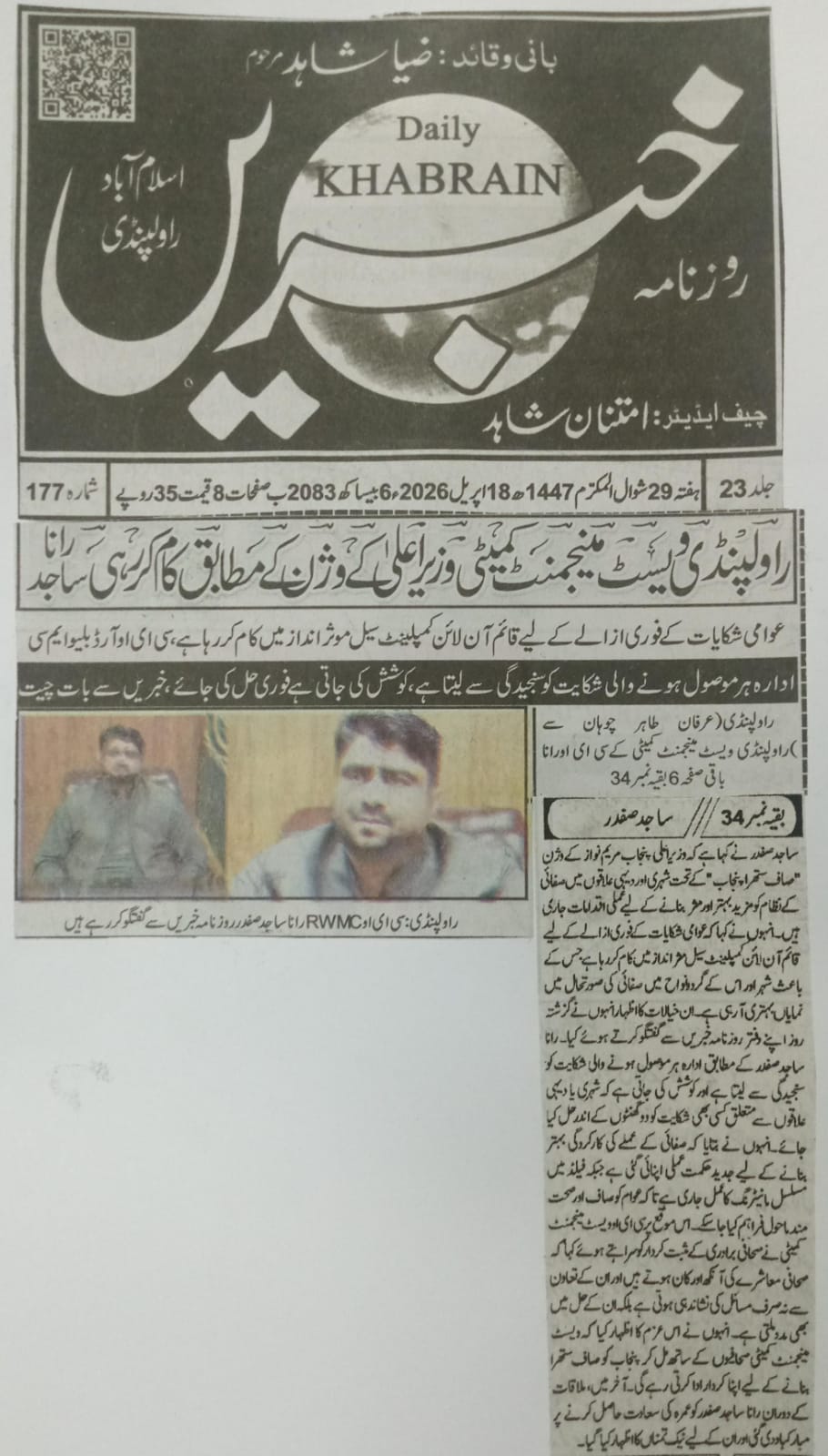 Chairman RWMC Saqib Rafiq inspected Loser Dump Site. On this occasion, CEO RWMC Rana Sajid Safdar and Senior Manager Operations Dr. Hamid Iqbal briefed him regarding the working of Loser Dump Station.