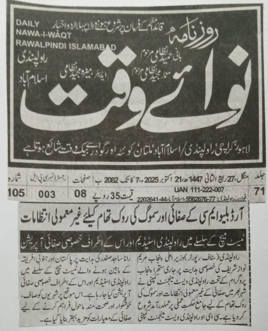 راولپنڈی ویسٹ مینجمنٹ کمپنی کی کمیونیکیشن ٹیم کے ارکان نے عید الاضحی صفائی و آگاہی مہم کے سلسلے میں جمعہ کے رو
