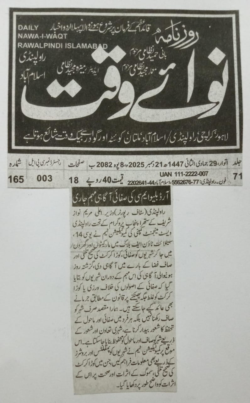 RWMC's cleanliness awareness campaign for Eid-ul-Adha.