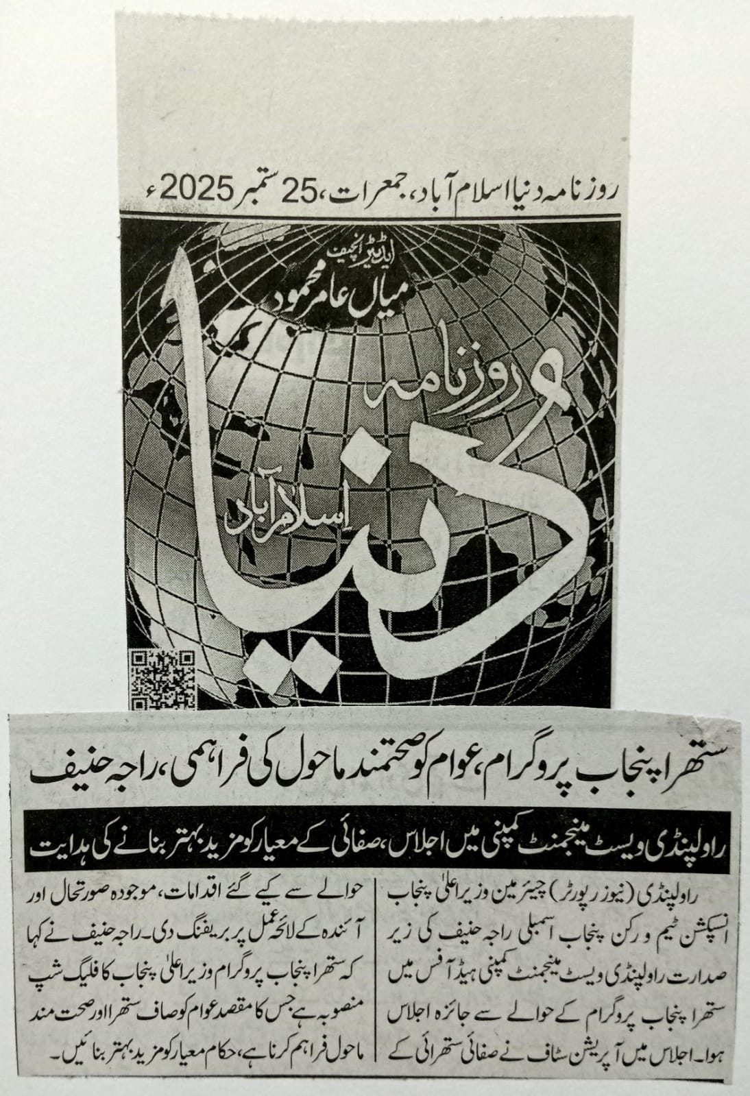 Solid waste management services in 63 union councils of the city which include: