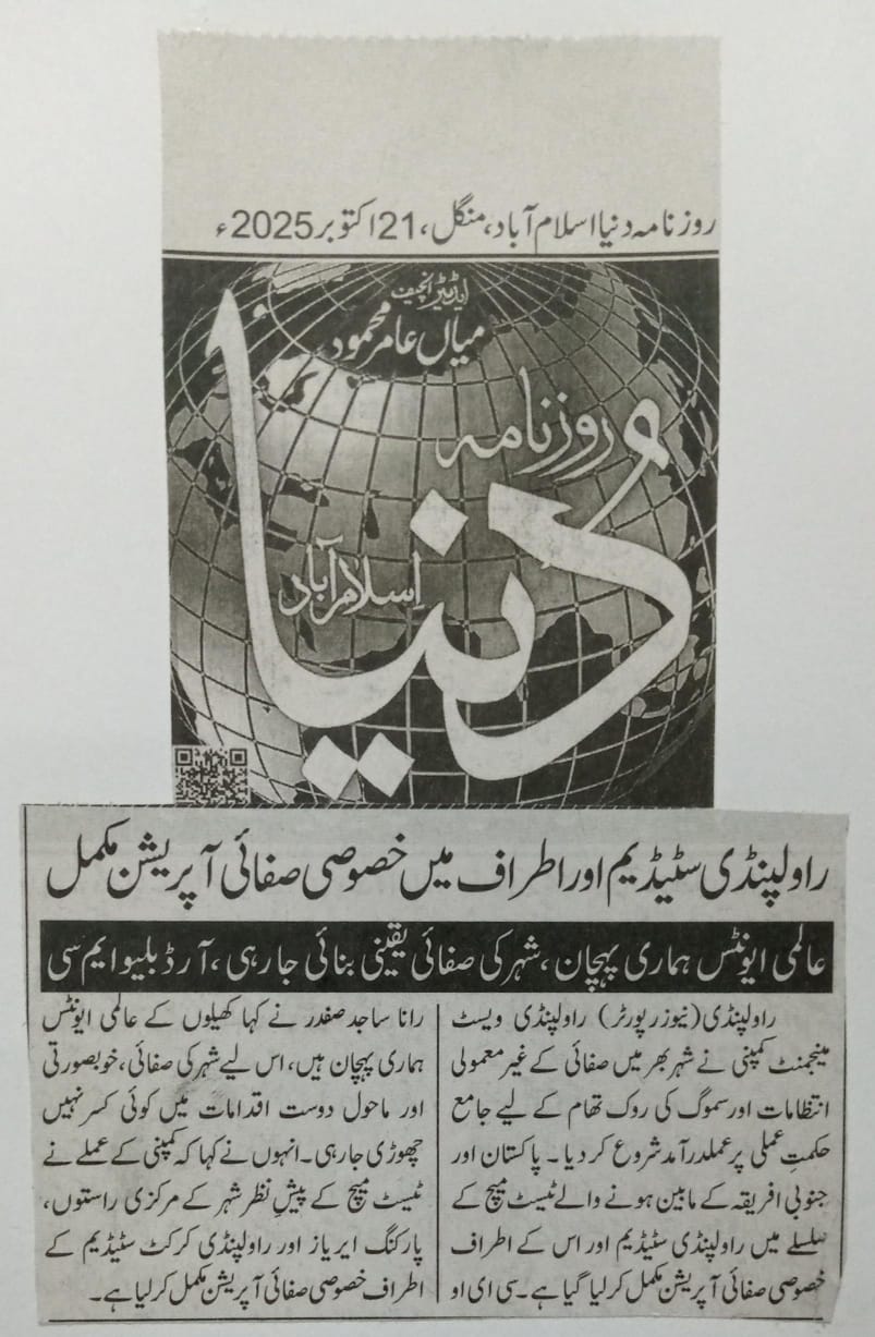 Chairman RWMC Saqib Rafiq continued his series of city visits to review the "20-Day Cleanliness Campaign".