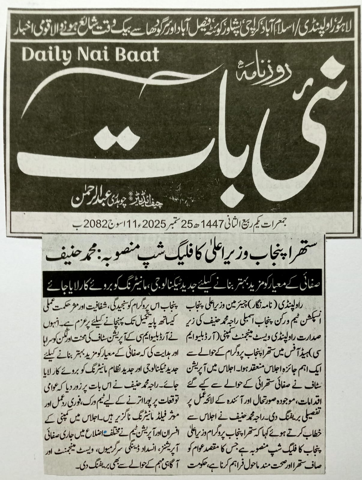 Every city and every street of Punjab should be made clean, Raja Hanif.