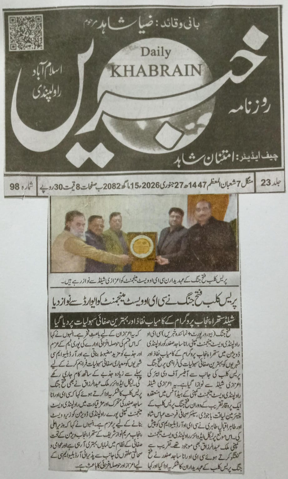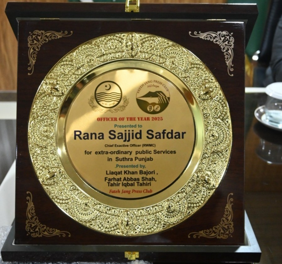 Fateh Jang Press Club presented an award to the CEO Rawalpindi Waste Management.