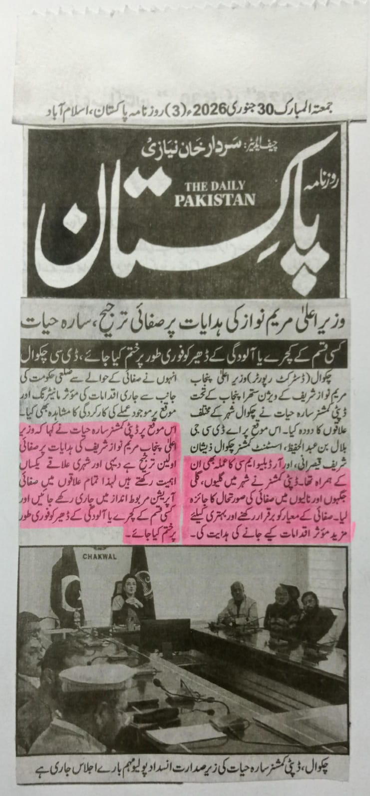 Cleanliness is a priority on the instructions of Chief Minister Maryam Nawaz, Sarah Hayat.